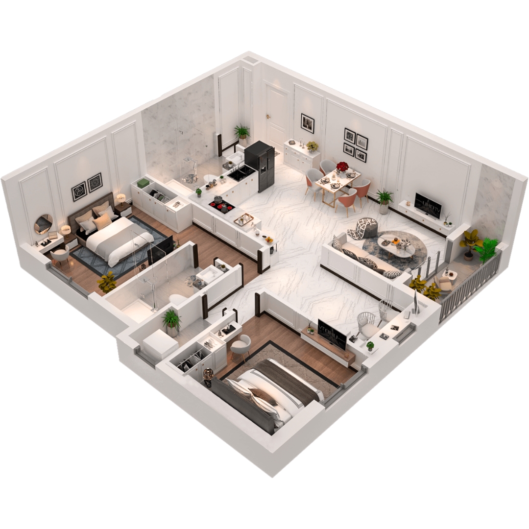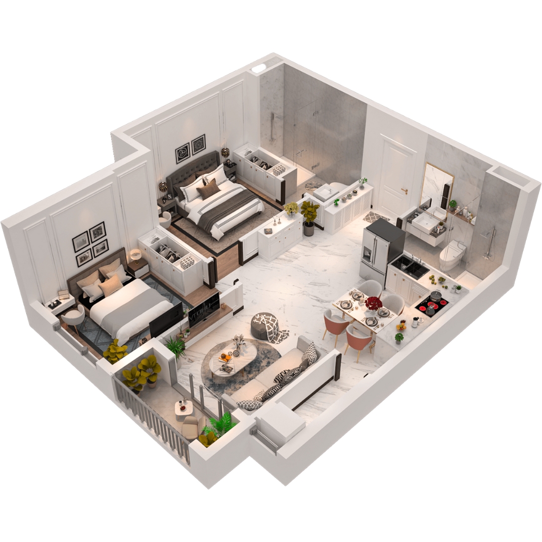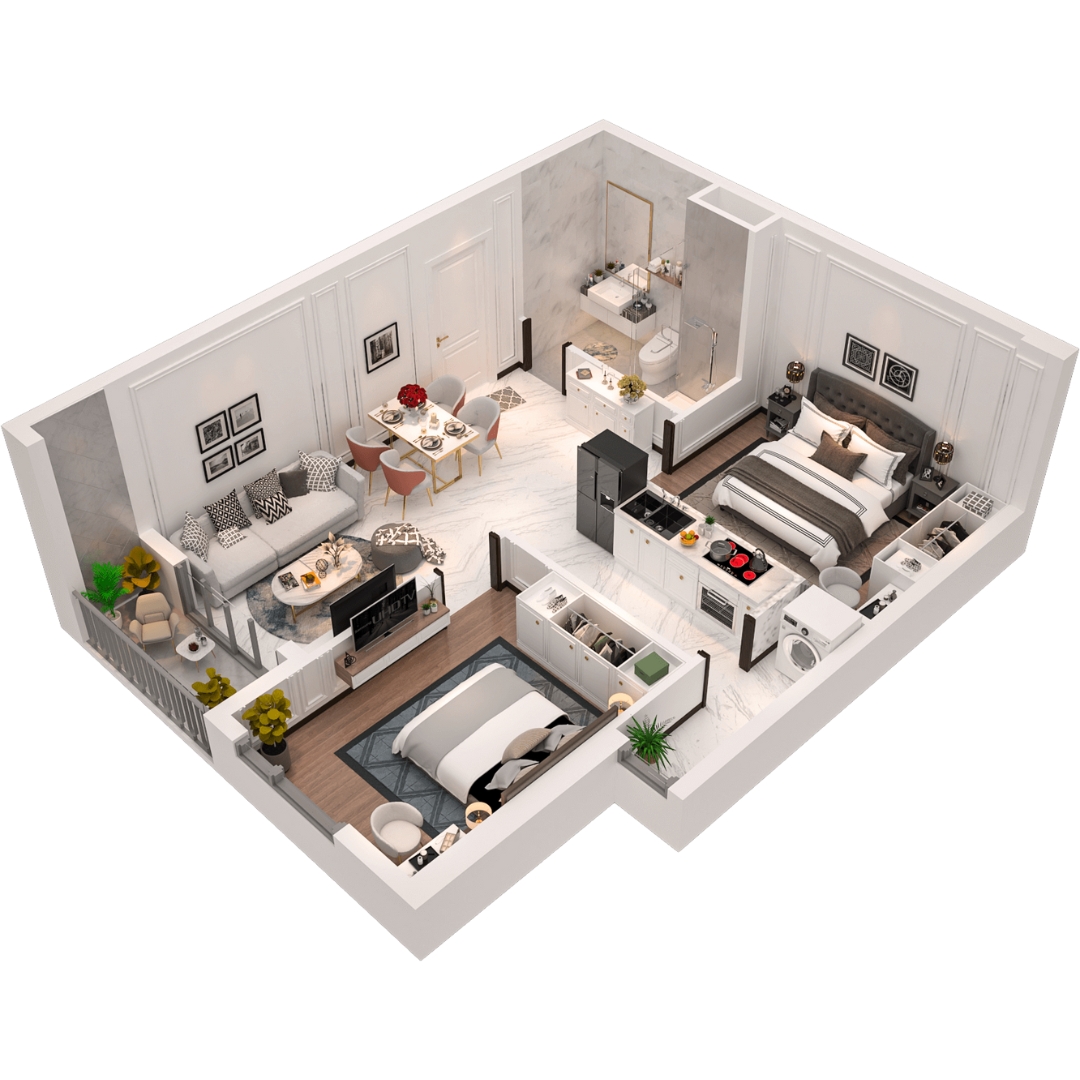 Thiết kế căn hộ 2PN+, 2WC